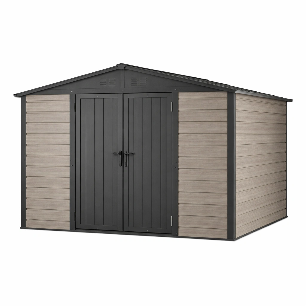 Cobertizo de jardín de polipropileno reforzado marrón y gris 254x228x256 cm