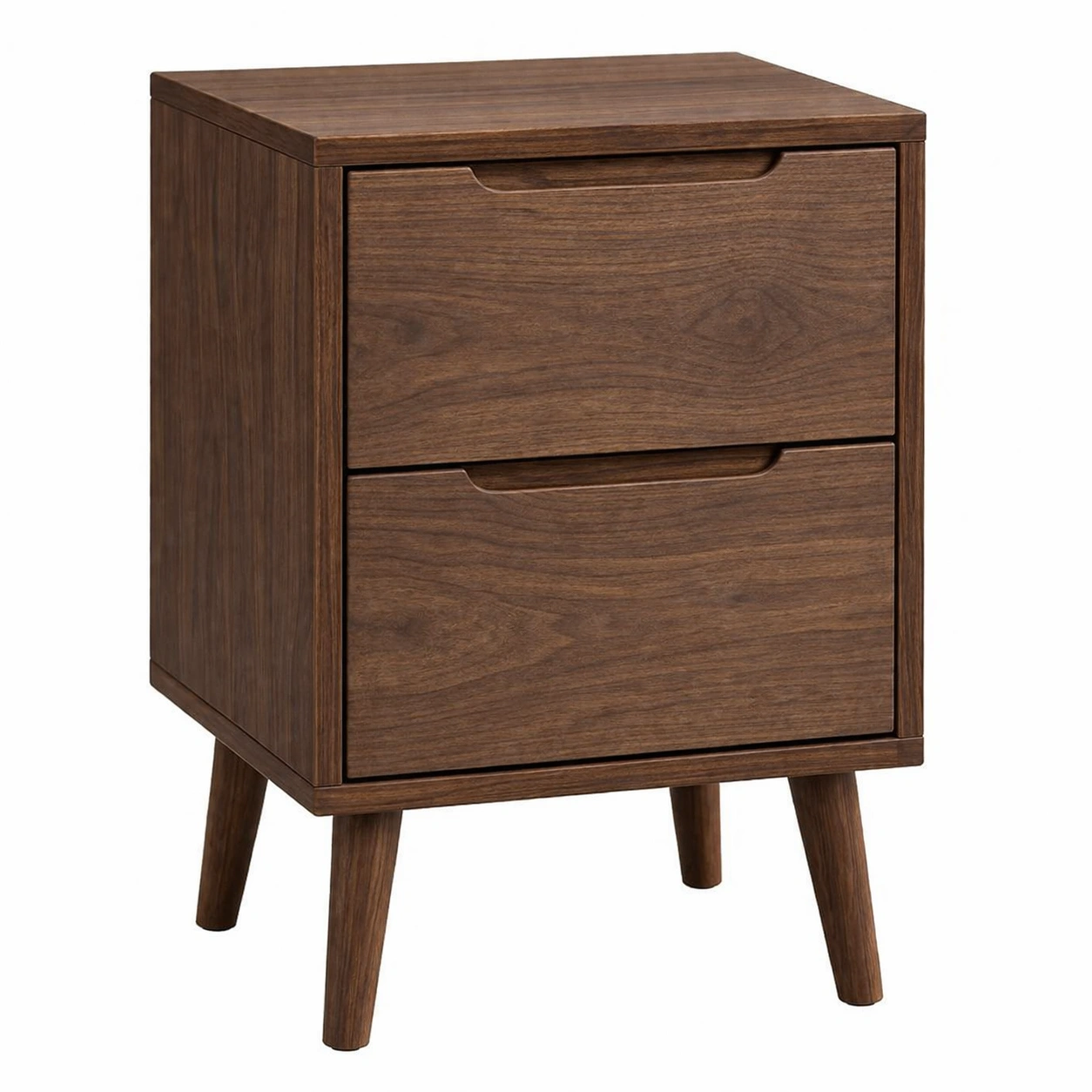 Mesita de noche de madera con chapa de nogal 2 cajones